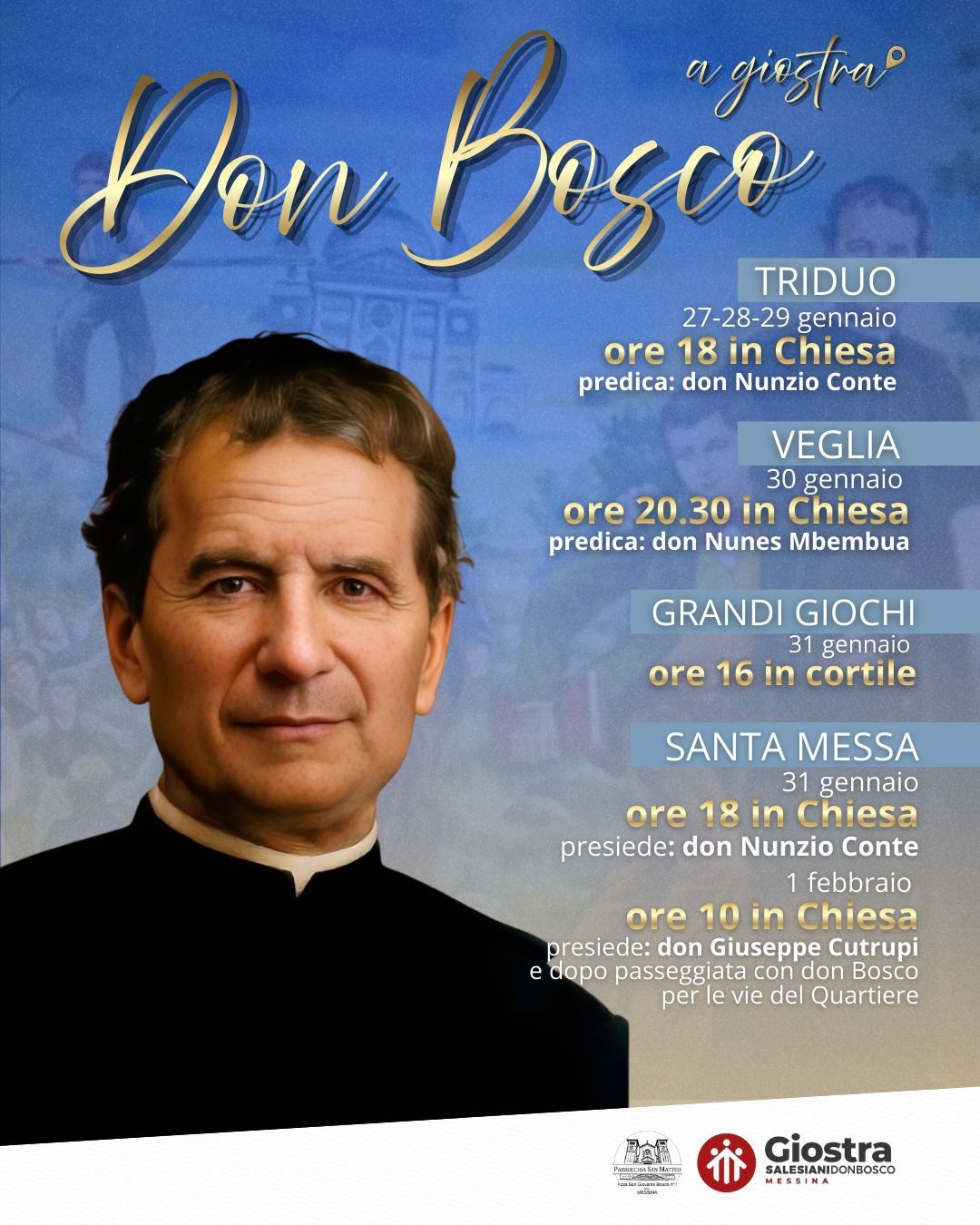 La Comunità di Giostra è lieta di presentare il programma dei festeggiamenti in onore di San Giovanni Bosco.